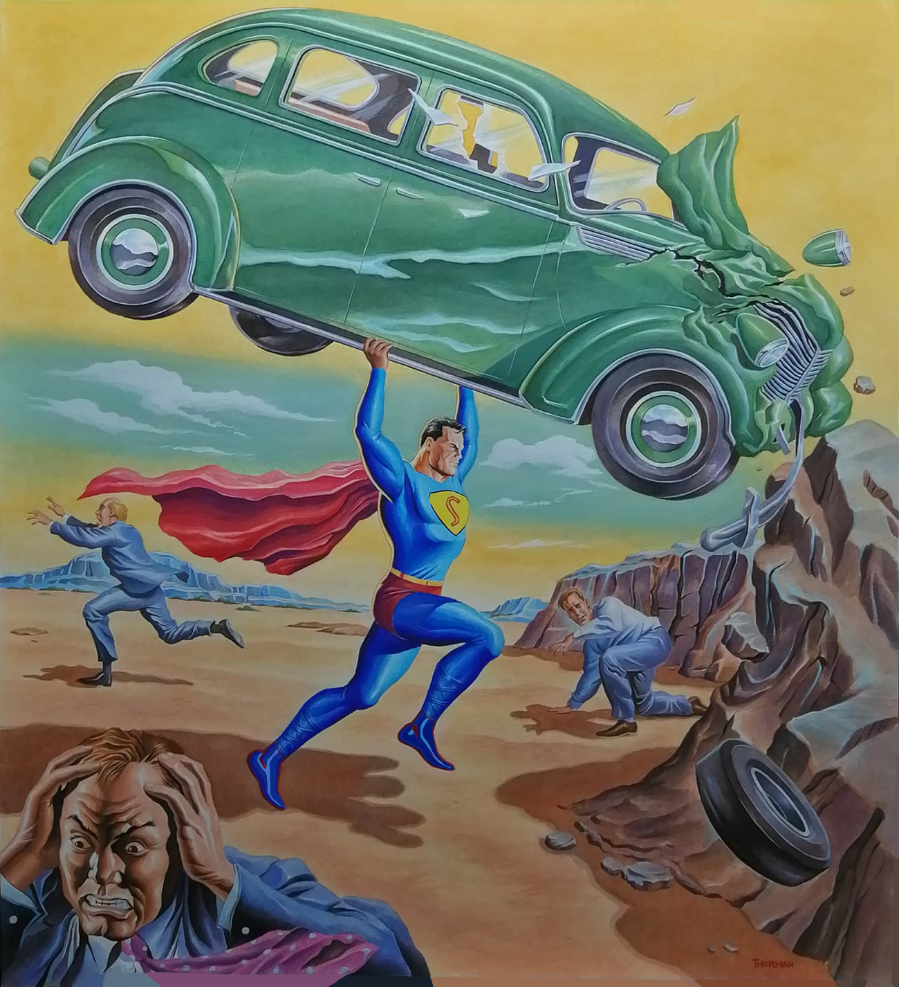 golden age superman clark kent by bruce mccorkindale, from recreation of cover of action comics 1, jun, 1938.