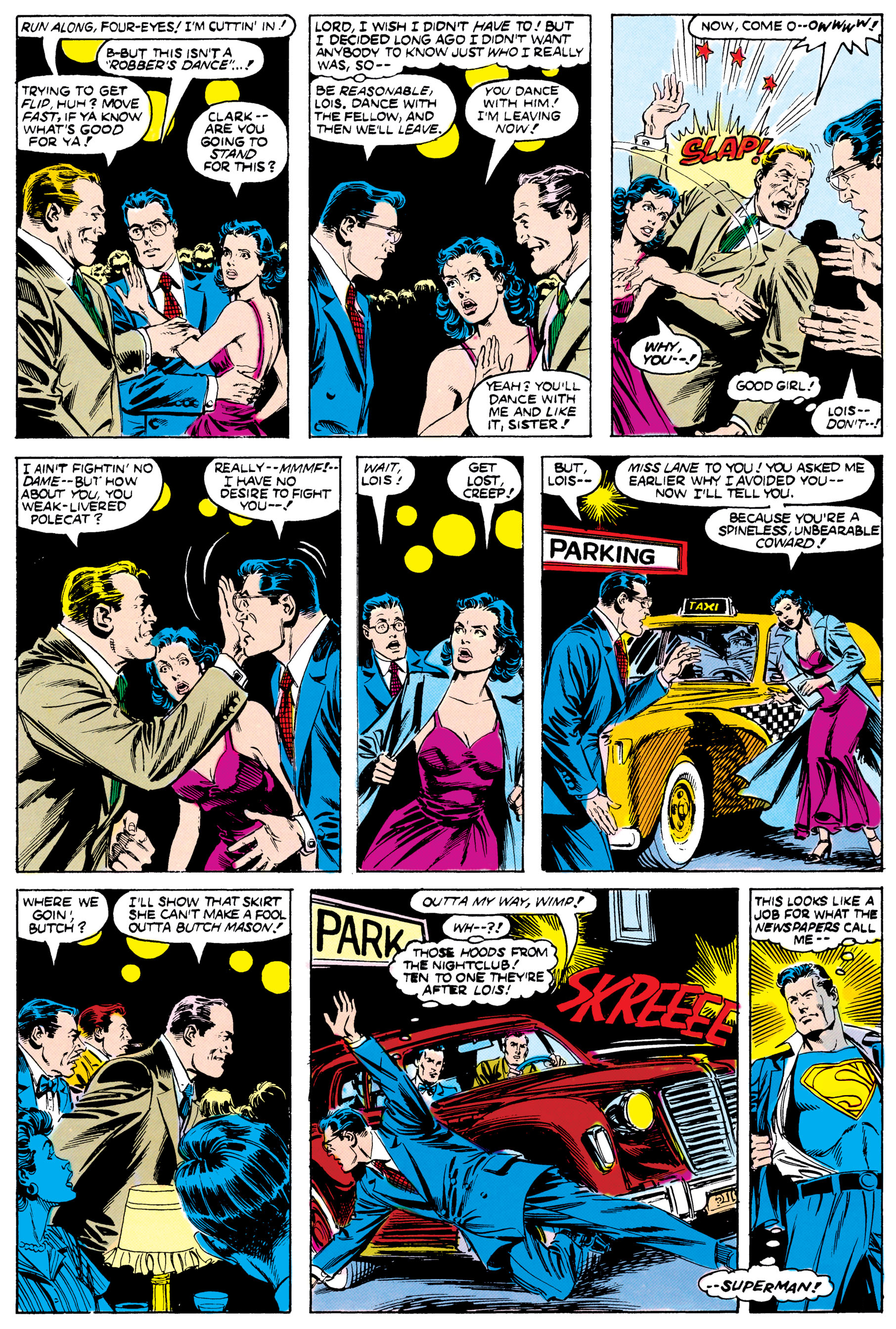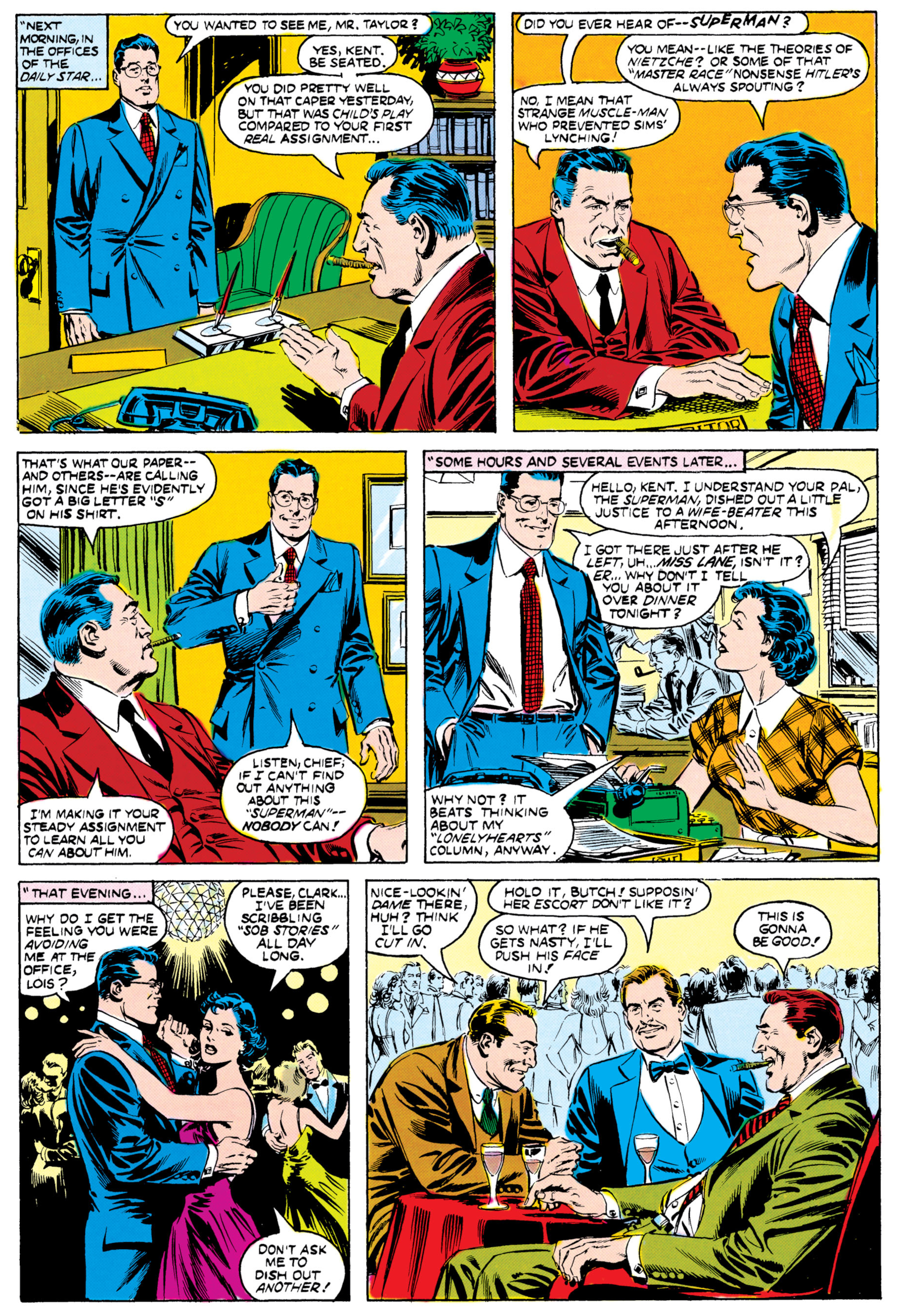 golden age superman clark kent by wayne boring, from interior of secret origins 1, apr, 1986.