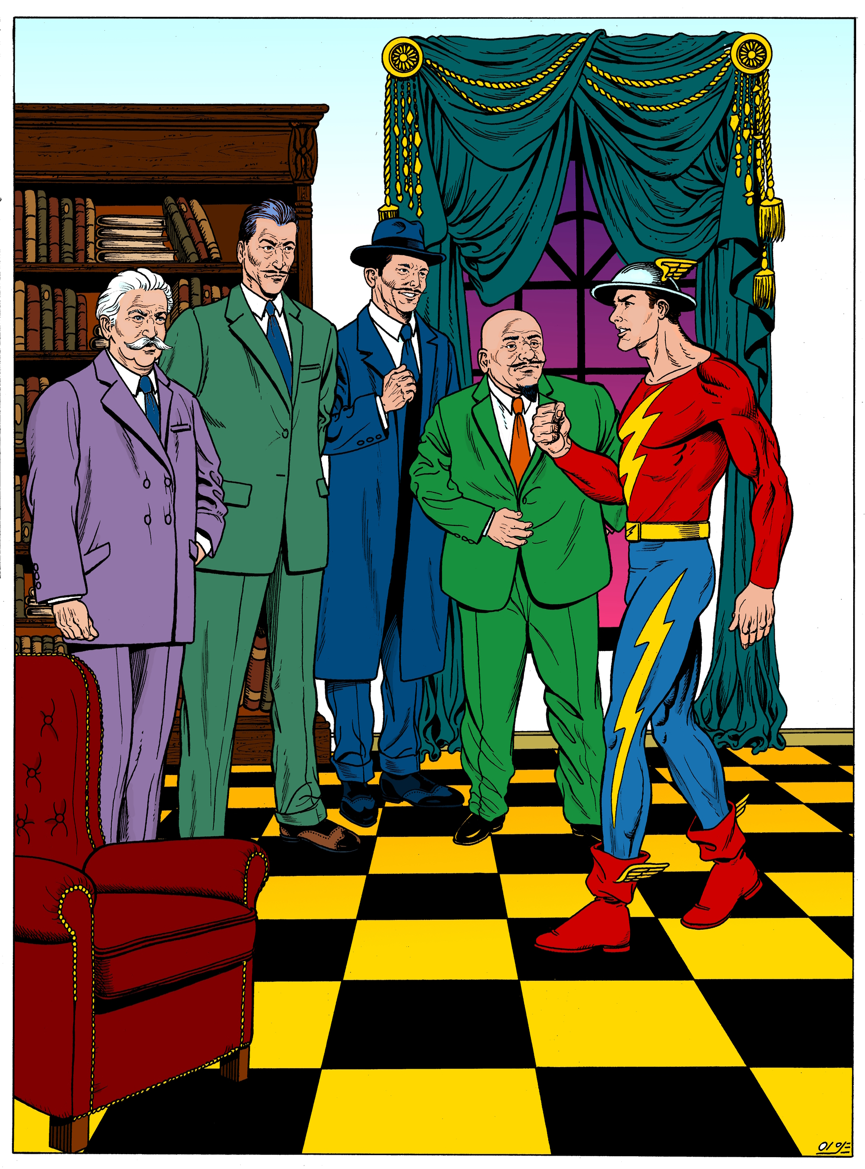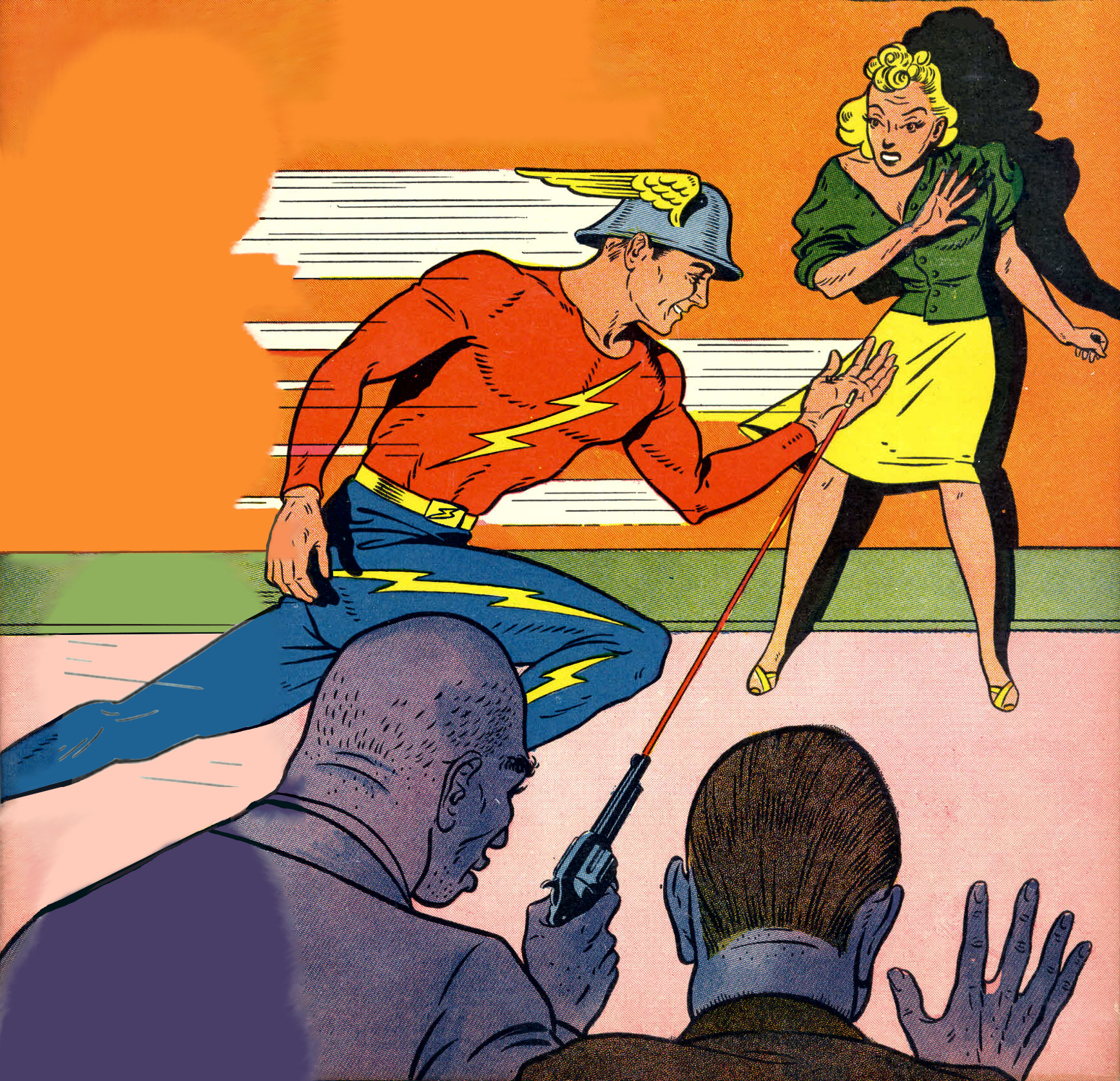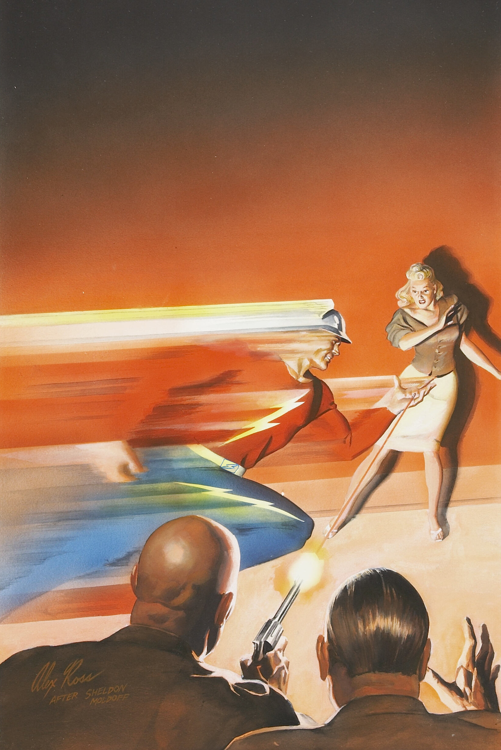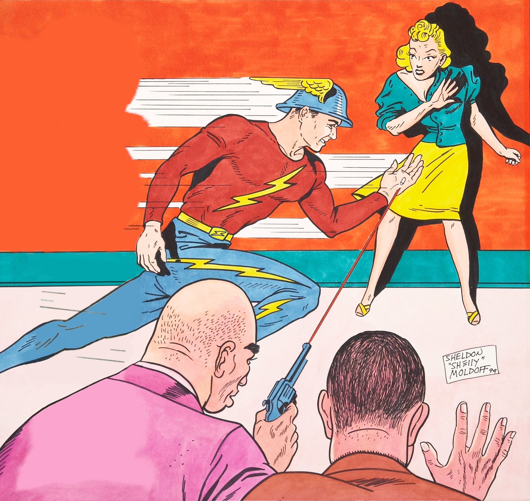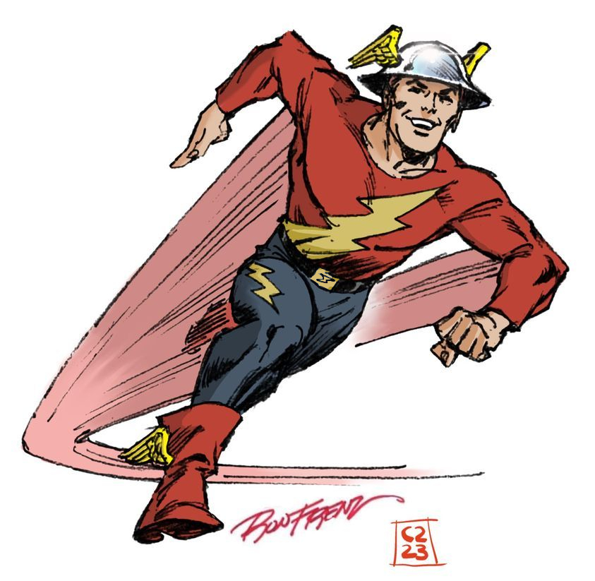 golden age flash jay garrick by sheldon moldoff, from recreation of cover of flash comics 1, jan, 1940.