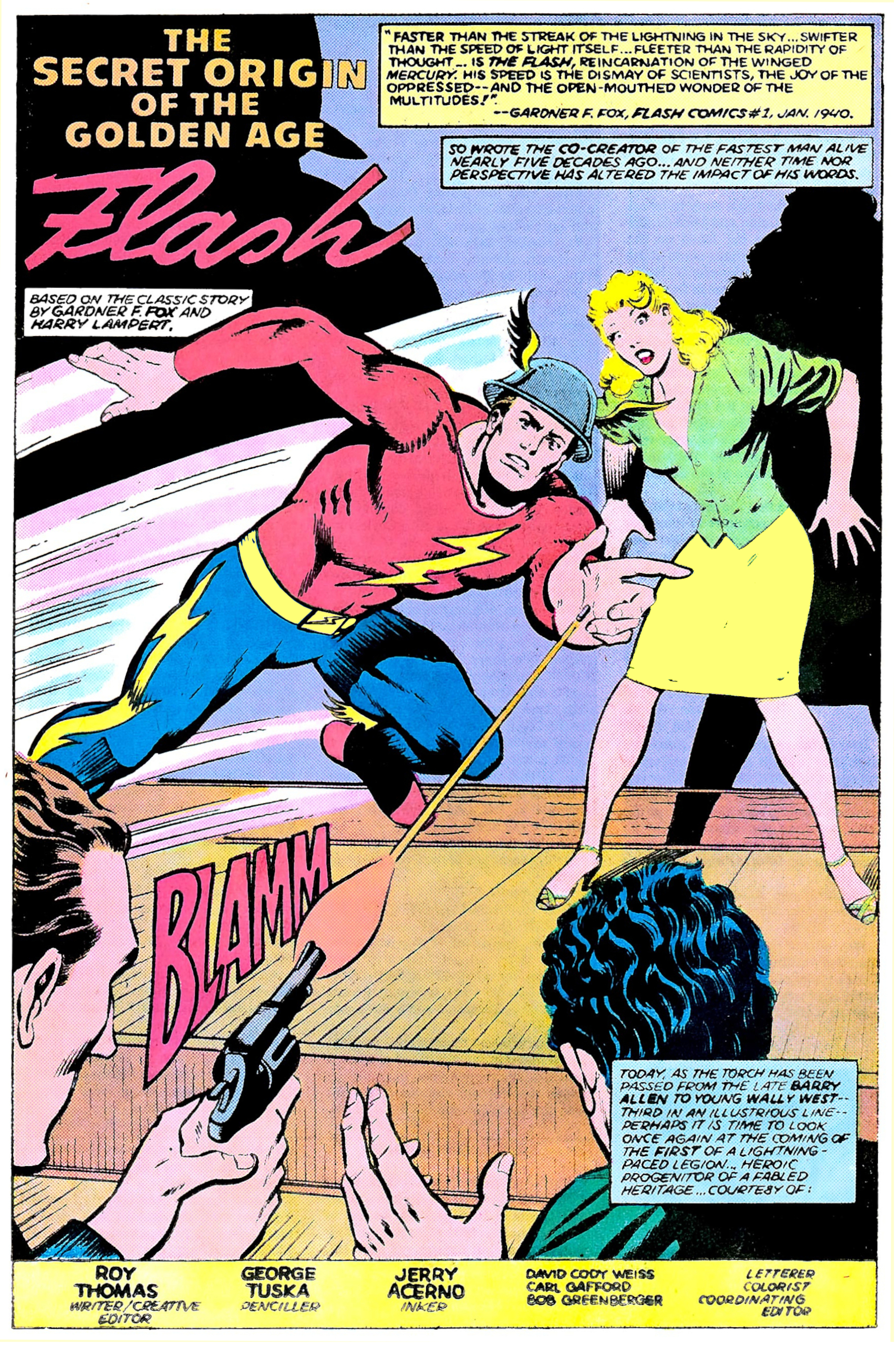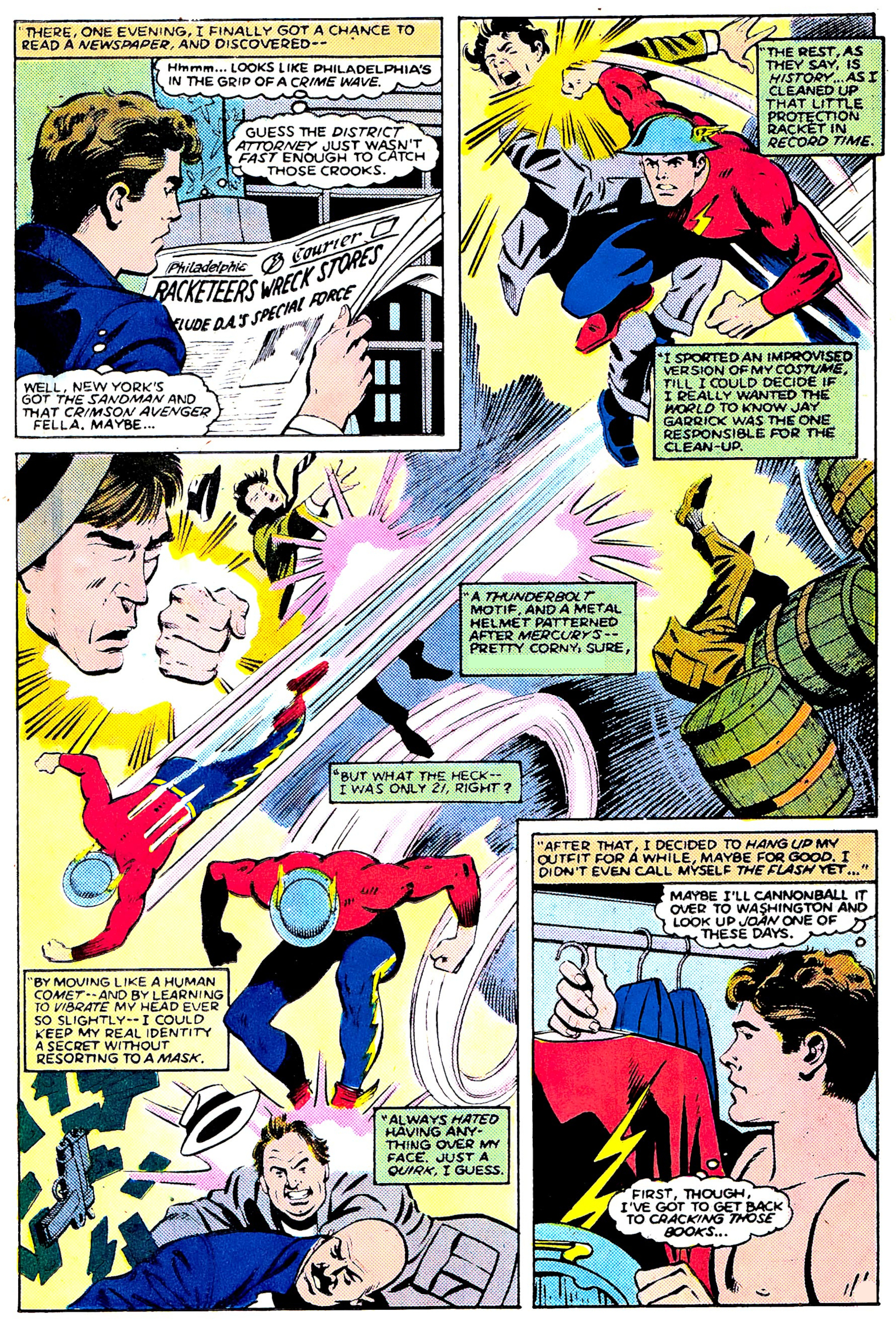 golden age flash jay garrick by george tuska, from interior of secret origins 9, dec, 1986.