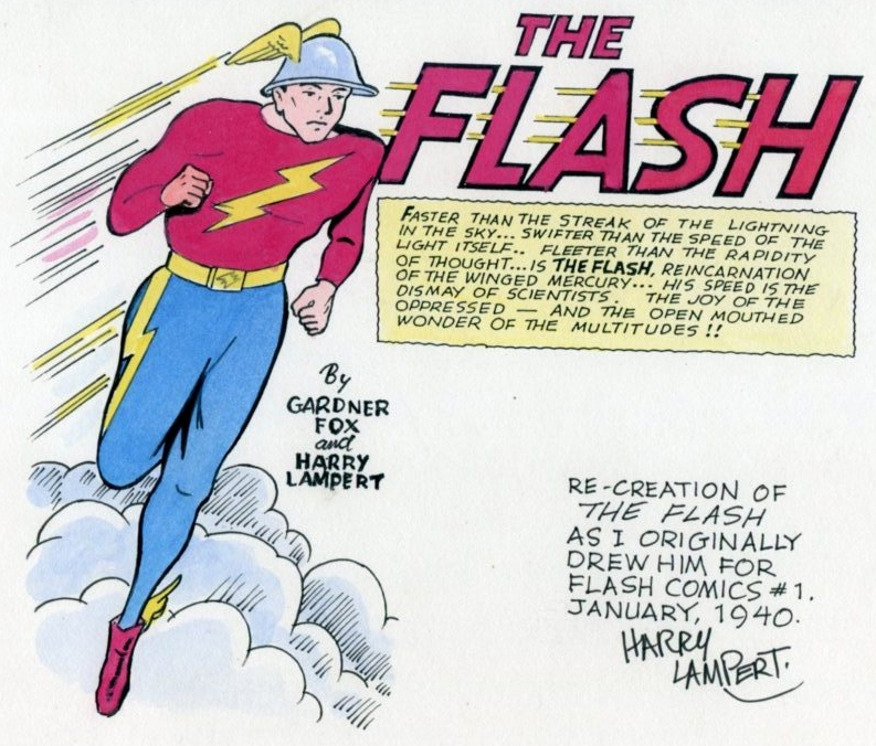 golden age flash jay garrick by harry lampert, based on flash comics 1, jan, 1940.